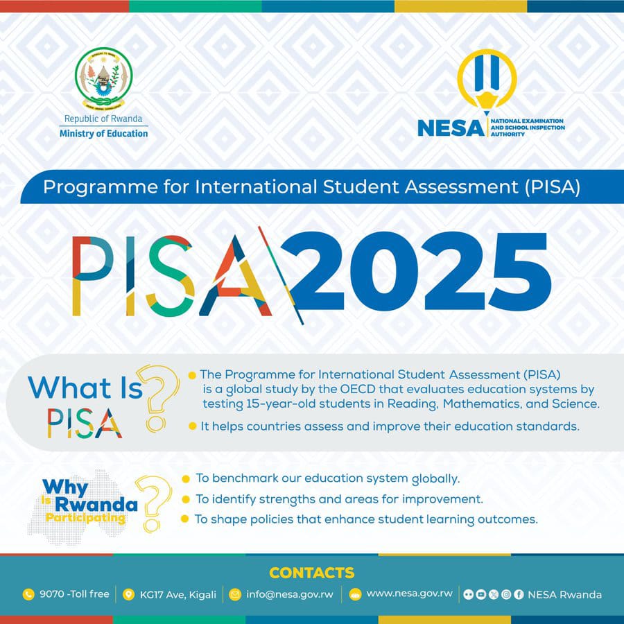 Ikigo cy’Igihugu gishinzwe Ibizamini n’Ubugenzuzi bw’Amashuri, NESA, gitangaza ko u Rwanda rwiteguye kwakira ibizava muri PISA 2025, rizasohoka muri Nzeri 2026.
