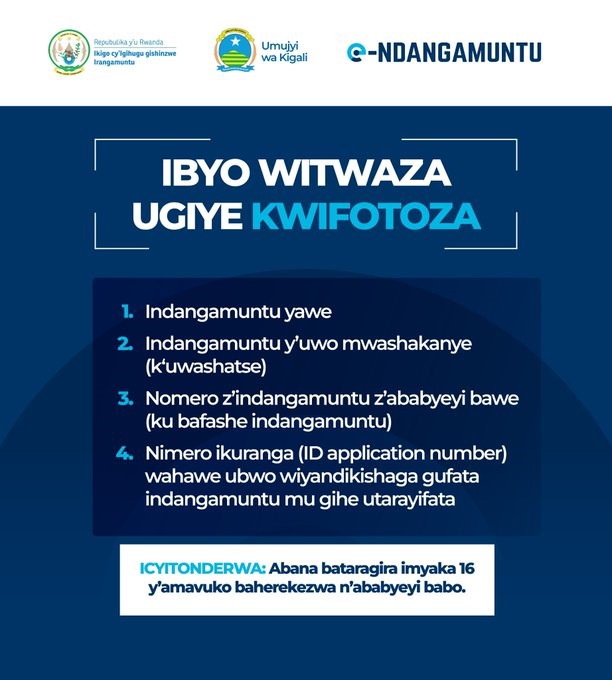 Ubuyobozi bw’Umujyi wa Kigali burakangurira abaturage bawo kwitabira igikorwa cyo kwemeza imyirondoro no kwifotoza, mu rwego rwo kwitegura guhabwa Indangamuntu Koranabuhanga (e-ndangamuntu).